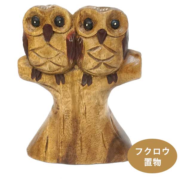 木彫りペア フクロウ フクロウ ふくろう 雑貨 オーナー雑貨 オブジェ ガーデンオブジェ 置物 手作り 木彫り